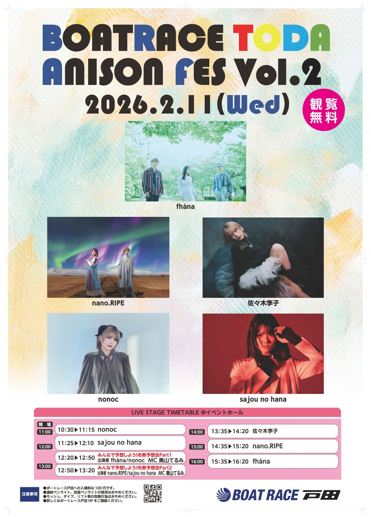 「BOATRACE TODA ANISON FES Vol.2」出演のお知らせ